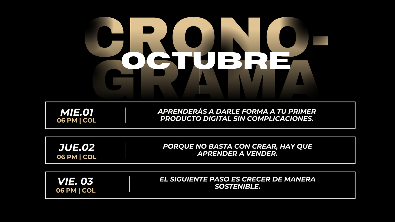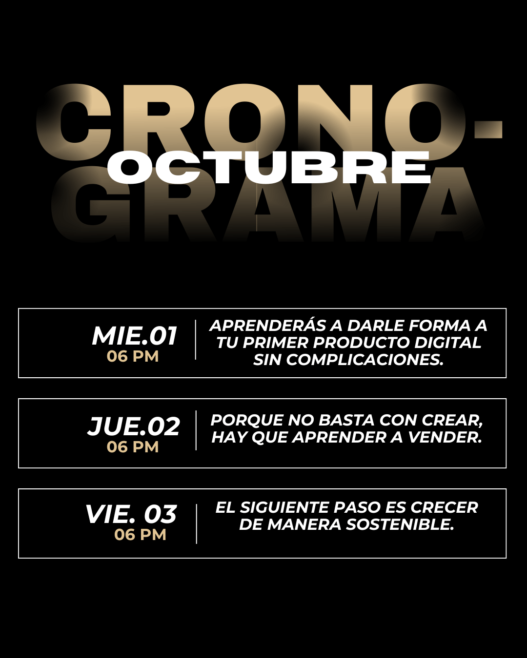 Del 01 al 03 de Octubre aprenderás una nueva habilidad y a Crear contenido estrátégico.